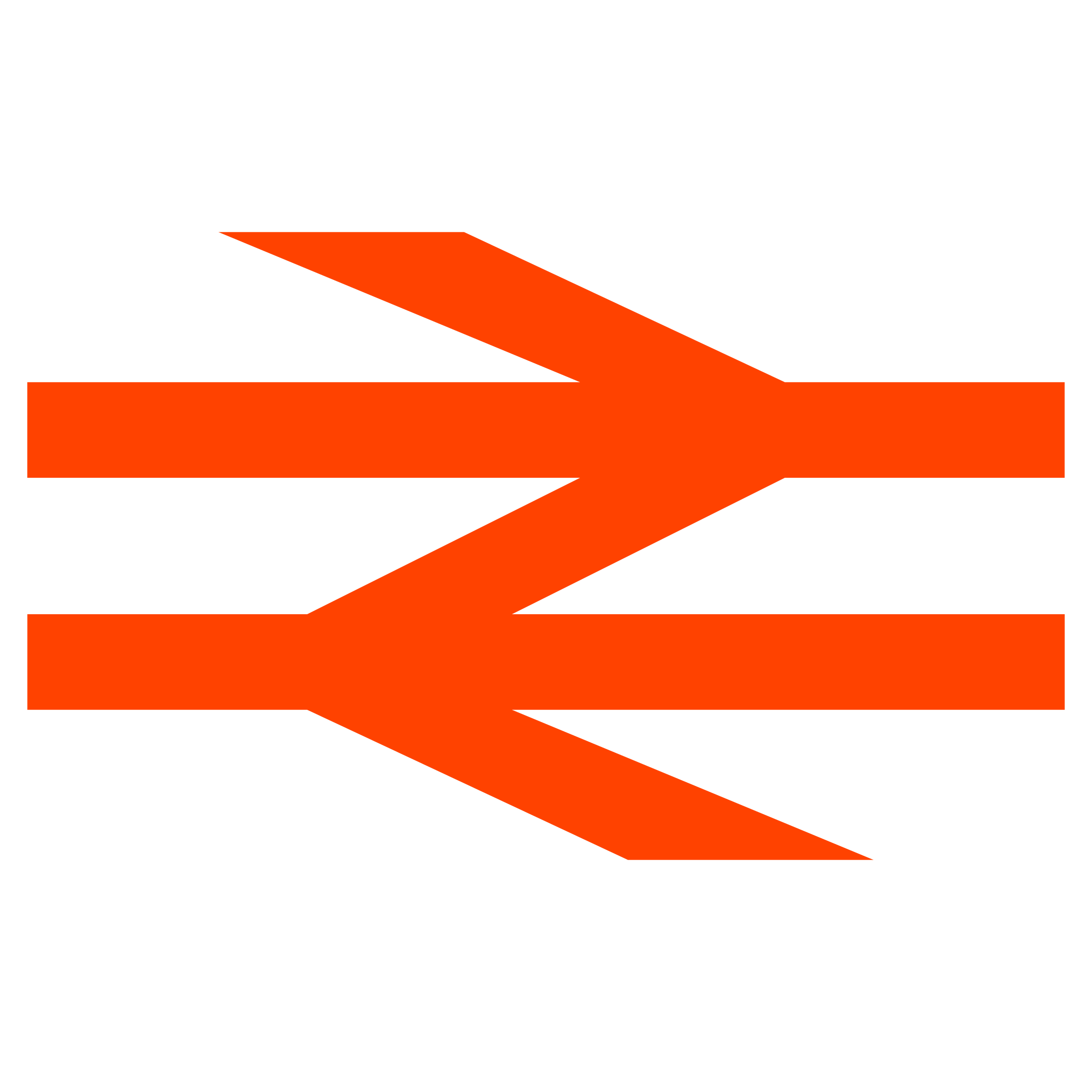 A depiction of the iconic British Rail 'Arrow of Indecision', used to symbolise National Rail services across the United Kingdom.