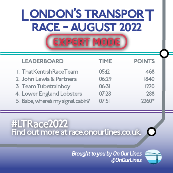 Leaderboard graphic for London's Transport Race/E1, held in August 2022.