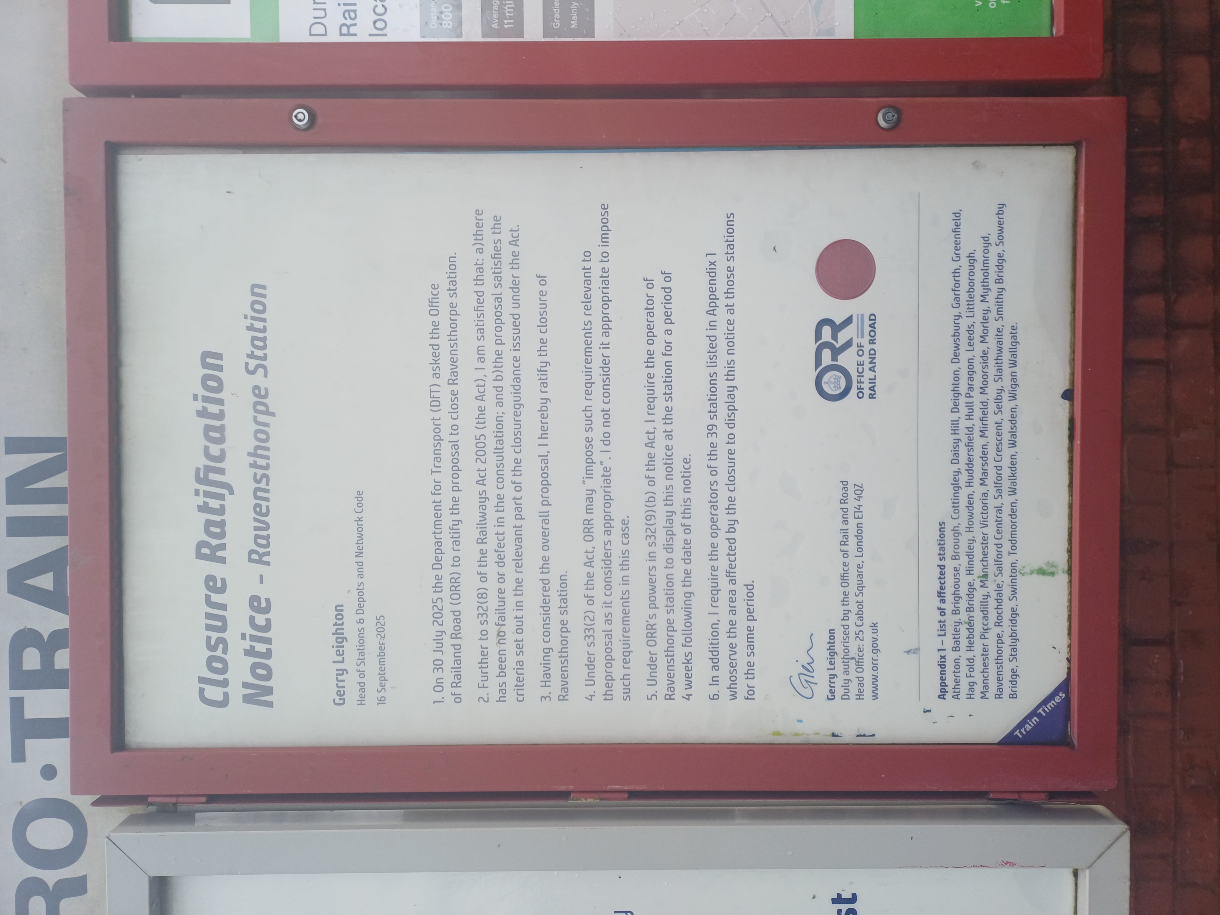 Ravensthorpe Station Closure Notice